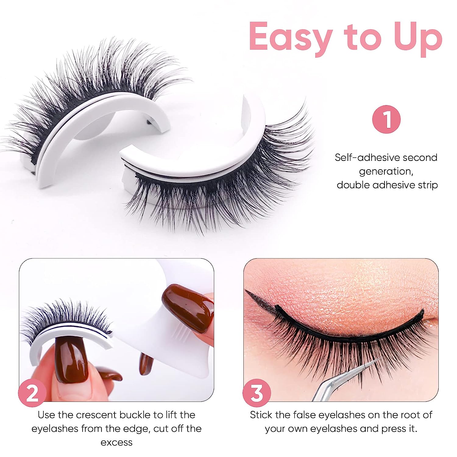 The newest false eyelashes that is easy to use, no need of glue or eyeliner. It is self-adhesive and can be applied in 3 seconds, greatly simplifies your makeup process. Saving time and effort.