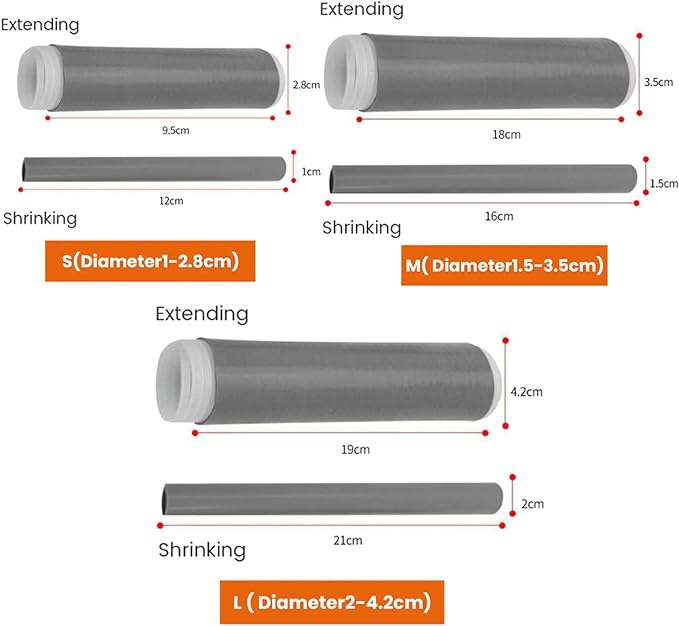 Multiple Sizes: Cold shrink tube handles are designed to provide a secure, tight fit for tools of all sizes, ensuring all-around protection and a comfortable grip. Available in S,M,L sizes, whether you need a smaller size or a larger size, we can meet your needs.