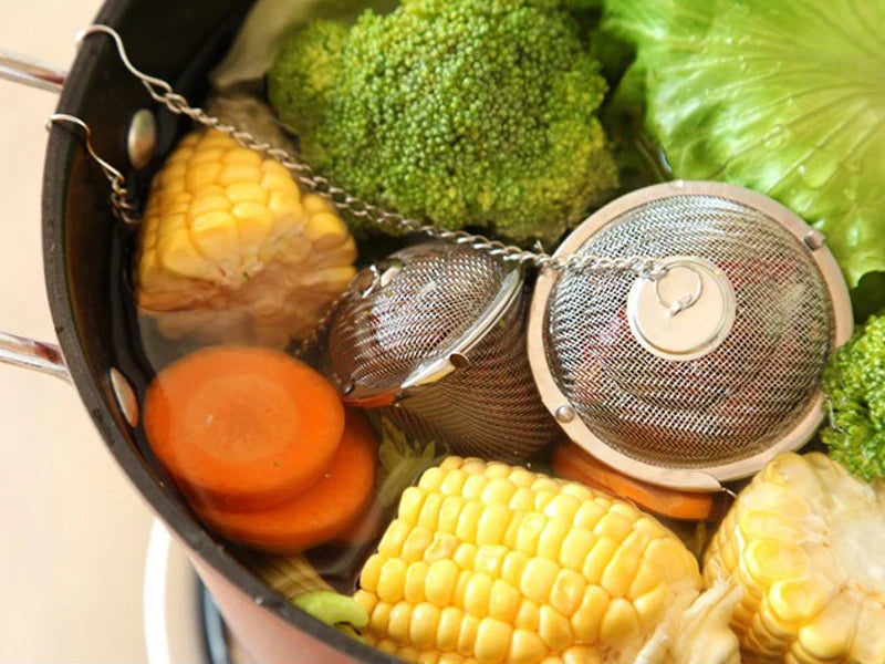 - MULTIFUNCTION: Fill the ball with fresh herbs, spices, or loose leaf tea to add delicious flavor to soups, stews, broths, gravies, large quantities of tea, spiced cider, and more.
